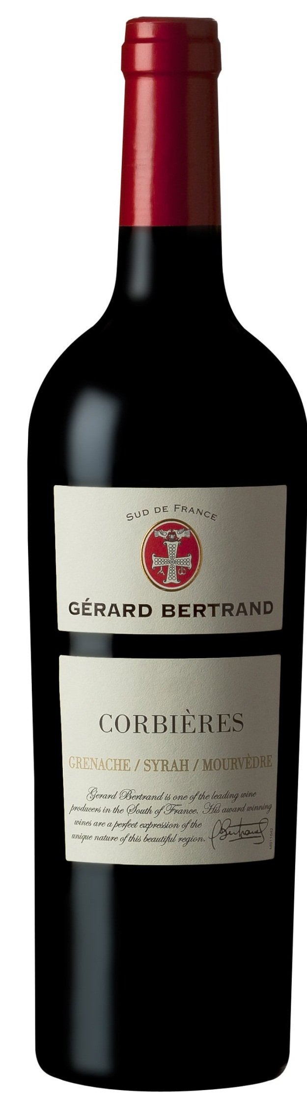 Gerard Bertrand Corbieres is a deep, concentrated color. The complex aromas of black fruit come from the carefully controlled extraction during vinification and from the exceptional ripeness of the grapes. A wine of distinctive character with all the flavors of ripe fruit, with subtle hints of spices and licorice.